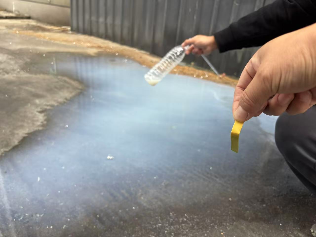 在紹興上虞區小越街道金瀾路智達工業園區3號樓北側,有這樣一大灘白色的污水,十分顯眼。就在上虞佳禾機械有限公司的...